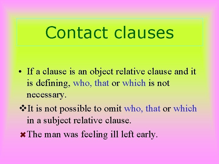 Relative Clauses From The Book from cdn.slidesharecdn.com It is sometimes called an adjective clause because it functions like an adjective—it gives more information about a noun. It has a subject and verb, but can't stand alone as a sentence. Also known as an adjective clause, an adjectival clause, and a relative construction. The textbooks, which the students like, have lots of helpful examples.. They are most often used to define or identify the noun that precedes them. In the sentence the dragon who breathed blue fire has retired, who breathed blue fire is a relative clause. Relative clauses allow us to provide additional information without having to start a new sentence. In english, there are two types of relative clauses: